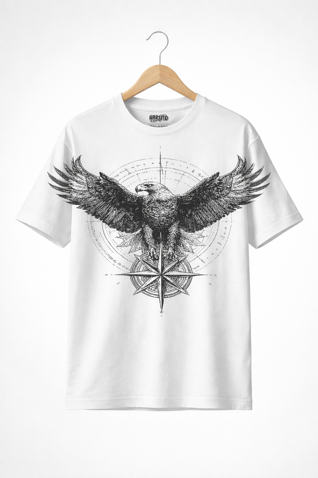 Upgrade your wardrobe with this Men’s Eagle Graphic Cotton T-Shirt in classic cream color. This stylish T-shirt features a bold eagle and compass print that adds a powerful streetwear vibe to your everyday look.